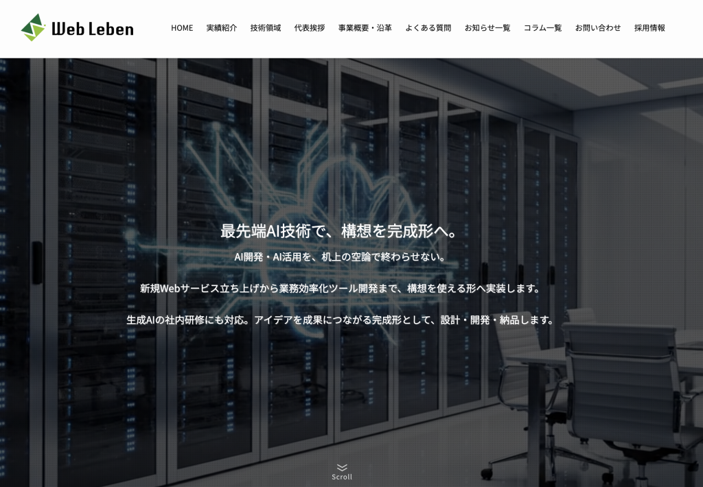 WebLebenでは、AI活用支援、業務効率化ツール開発、Webアプリ開発、生成AI研修まで一貫して対応しています。
