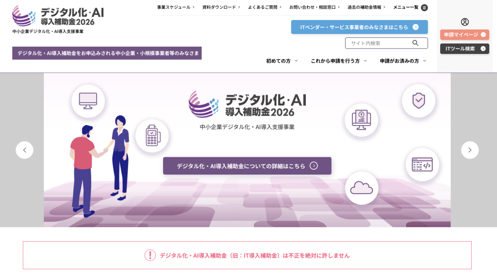 なお、2026年度は「デジタル化・AI導入補助金」(旧IT導入補助金)をはじめ、複数の補助金制度が利用可能です。